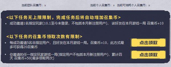 1.邀请玩家玩游戏可获得10召唤币,任务可重复完成。
