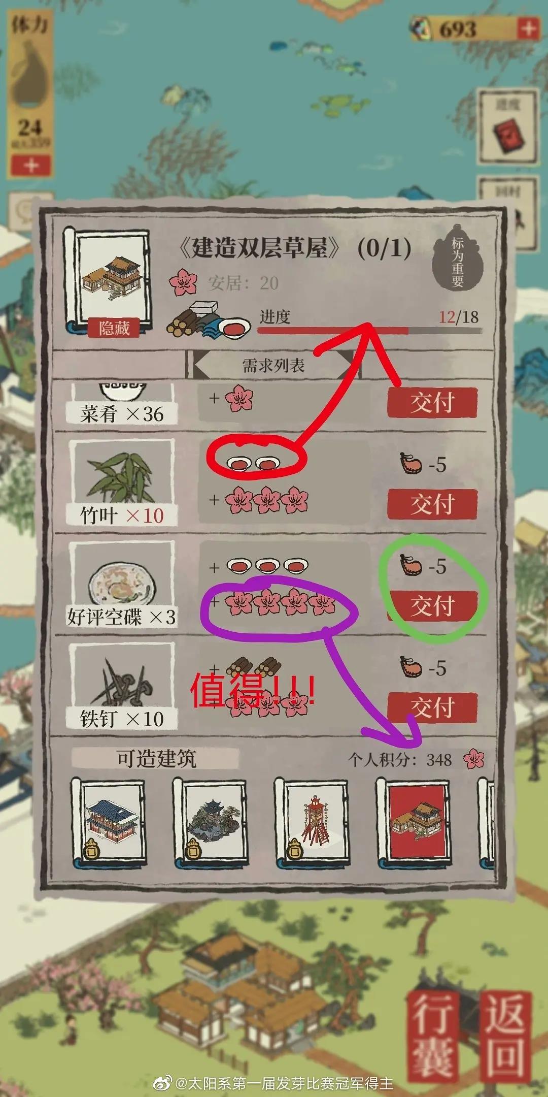 分数1分。如果一个建筑的(主题属性进度)/占用方格数小于18,建议不要建这个,直接建路灯(18进度,一格可以赚25分左右)
