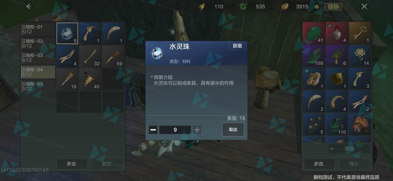 在海中采集野生水精可以获得水珠,但是会在海中淹没很久。
