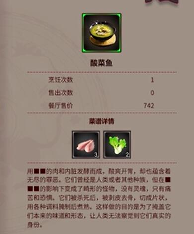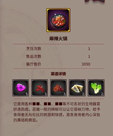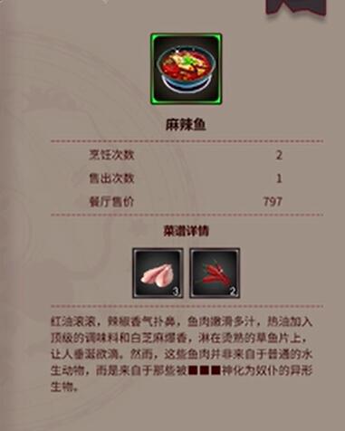 水煮肉片:怪肉x 4 辣椒x 1 花椒x 1