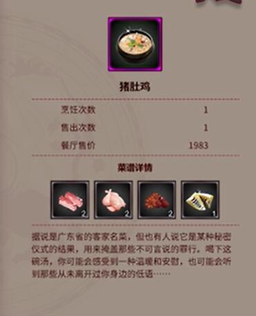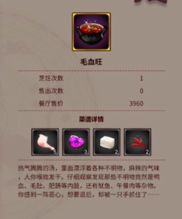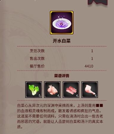 煮白菜:绿叶蔬菜x 5 鸡肉x 4 猪肉x 4 鸭x 4
