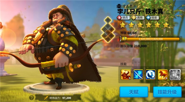 3、铁木真+佩拉约(根据武将等级和等级技能安排主副将)