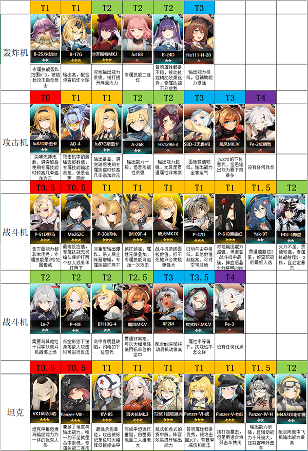3、轰炸机角色推荐: