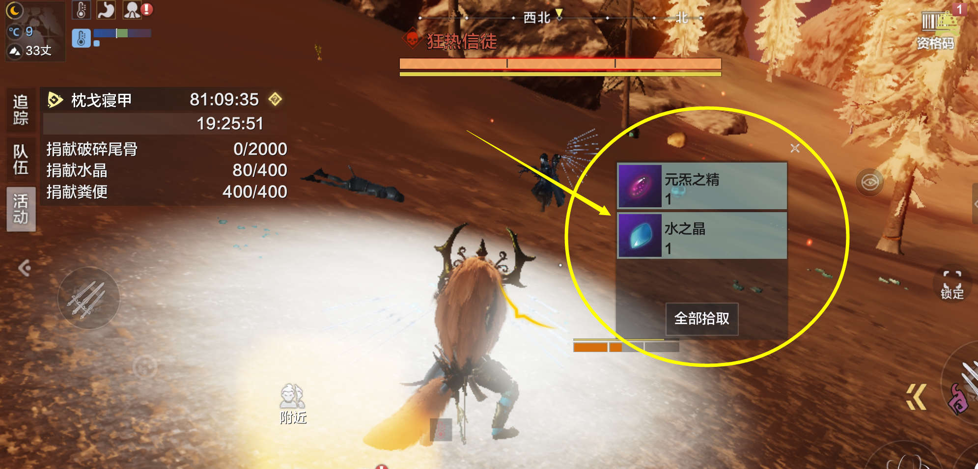 到达活动地点后,步行至图腾柱处,点击【捐赠】按钮即可交出物资。