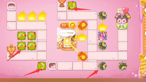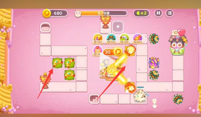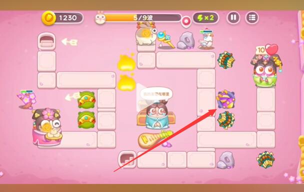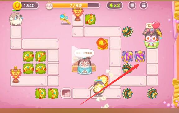 9。如图所示,添加回旋镖、多支箭和糖果炮来完成游戏。