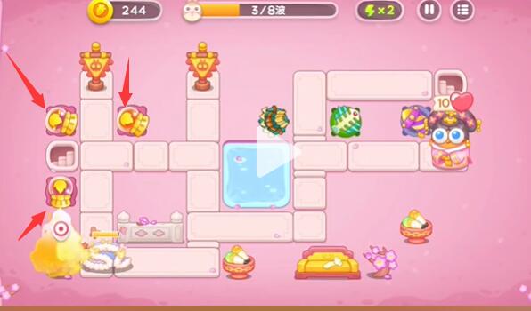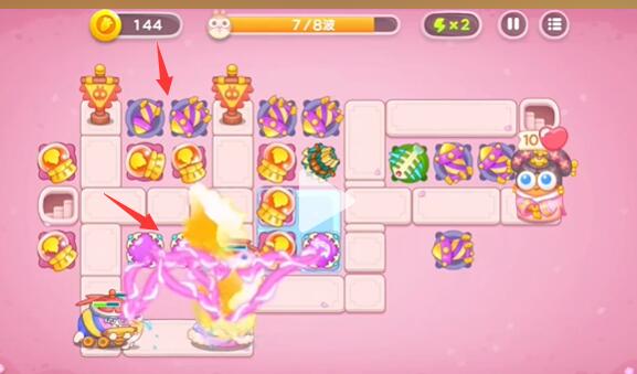 5。第五波有很多怪物。就在左中放三门糖果炮,右上方加两枚导弹。