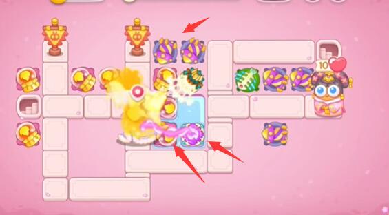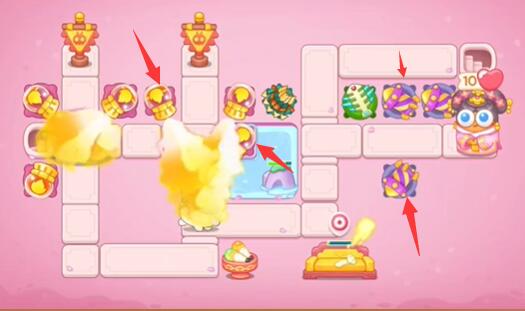 1。一开始在出口的边缘放多个箭头清洗道具,在入口处放一个多重箭头清洗道具。