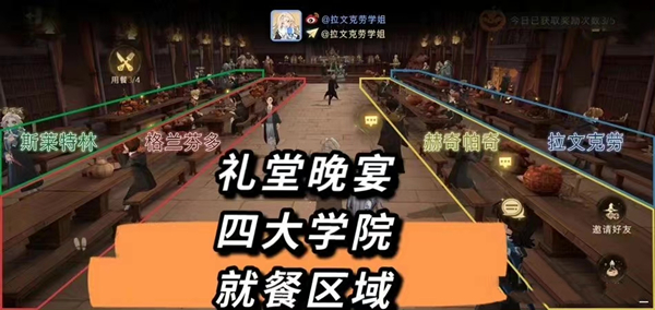3.然后我们只需要去任何其他学院的餐桌吃饭就可以了。玩家可以通过观察NPC围巾的颜色来区分和判断学院。