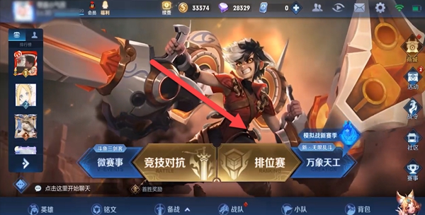 1、首先玩家进入大厅王者荣耀,点击排位。