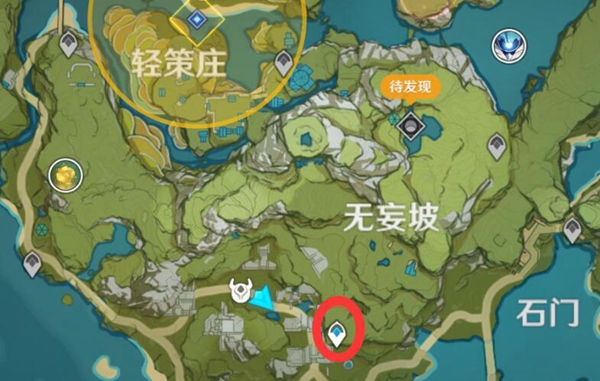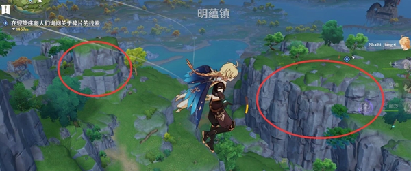 明云镇坑内两山之间有一处。玩家可以在两座山上寻找(如下图)。