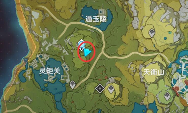 玩家来到下图所示的红圈位置(顿雨岭和灵矩关之间的雕像旁边),玩家从上面跳下来就可以找到2。