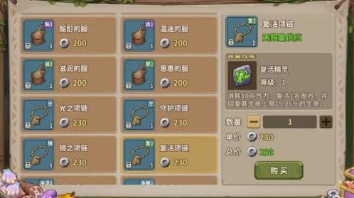 2.复活精灵:选择复活精灵可以复活战斗失败的宠物。与滋养精灵结合,具有长期团战的效果;