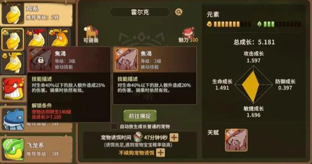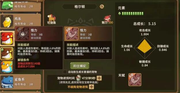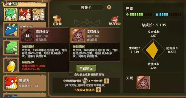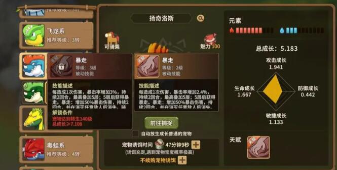 1、滋养精灵:选择滋养精灵可以帮助伙伴恢复血量,保证战斗时的生存能力;