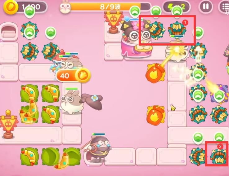 2.放置一支多点箭头,击倒下面的道具并放置另一支。