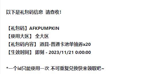以上为2023年最新万圣节礼包码列表,玩家可使用礼包码获得20张普通卡池单抽奖券。希望对各位玩家有所帮助。