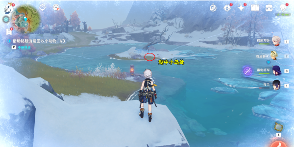 4、可以看到雪狐1被水包围,它的位置就是右下角湖中的小岛;
