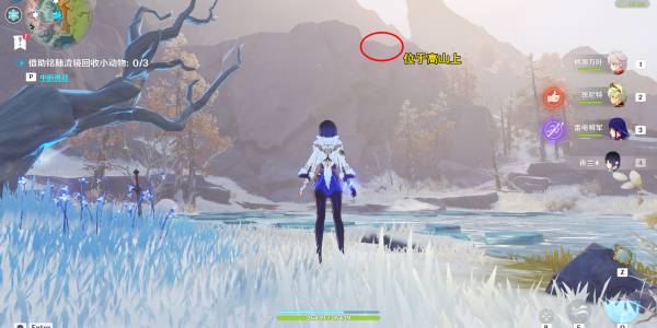 5、雪狐2在高处,可以看到金银花树。它位于左下角的山上。找到所有的人来完成这个任务。