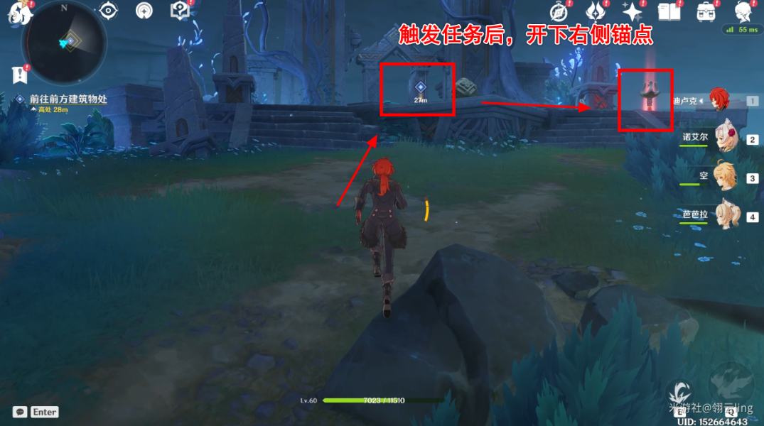 1.首先,前往洞穴深处。到达后前往建筑物,经过光点即可触发任务;