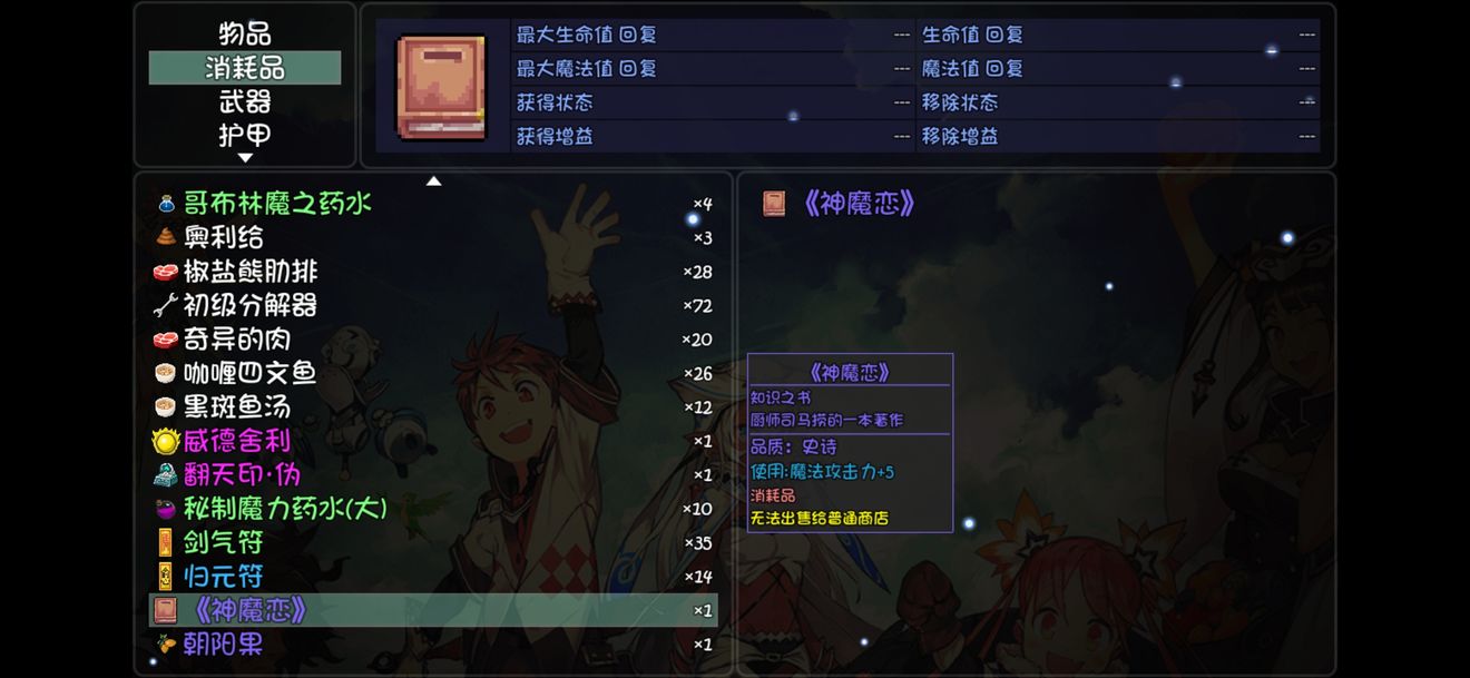 还有一本关于鬼神之恋的书,魔法攻击加5
