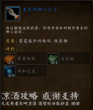 与很多玩家相比,狮心杀手知道,TBC锻剑系列的最终武器一定是听说过的,哪怕是没有玩过TBC。很长一段时间以来,锻造三系武器已经绝版,熊猫人版将它们重新带回游戏中。