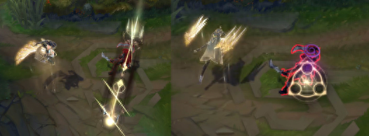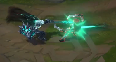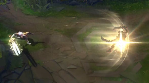 当奥拉夫发动W技能时,他的双手将会被圣光包围,武器也会被加持上金光效果。