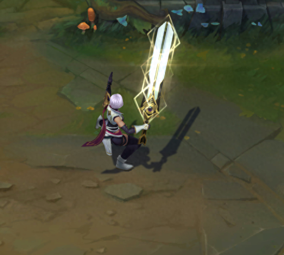 先来说说大家熟知的人气英雄剑少女。他也是我没有练过的英雄……和其他剑姬皮肤一样,我身后的武器在有被动buff的时候会有发光的效果。这也是光之哨兵的代表。灯光风格。