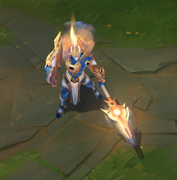 当R技能开启时,万神殿将会被蓝色的星系武器包围。力量逐渐积累之后,一道金色光柱就会从天而降。我对这款完美皮肤的压力和气势感到完全满意,而且作为一款完美皮肤,它的升级内容也是非常有诚意的。
