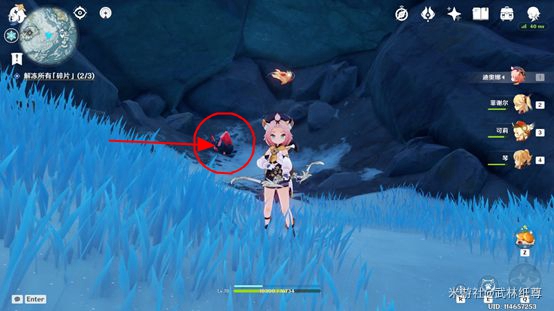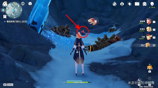 2.你需要注意的是冰下的那个。你需要角色踩在冰上并压碎浮冰才能得到它。