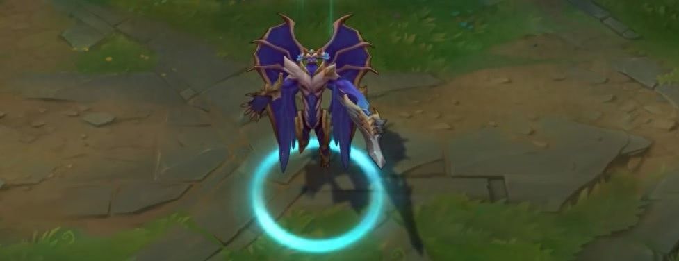 可以明显看到这款皮肤的回城特效没有了,不过这个应该是后期修复的。毕竟这款皮肤的召回效果和暴君异形是一样的,与默认皮肤不同。