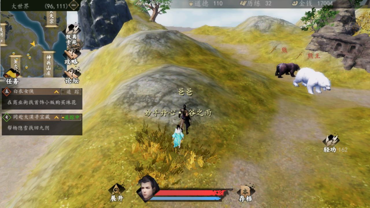 沈冰山庄有两只很难打败的熊。打不过他们,就绕道走。
