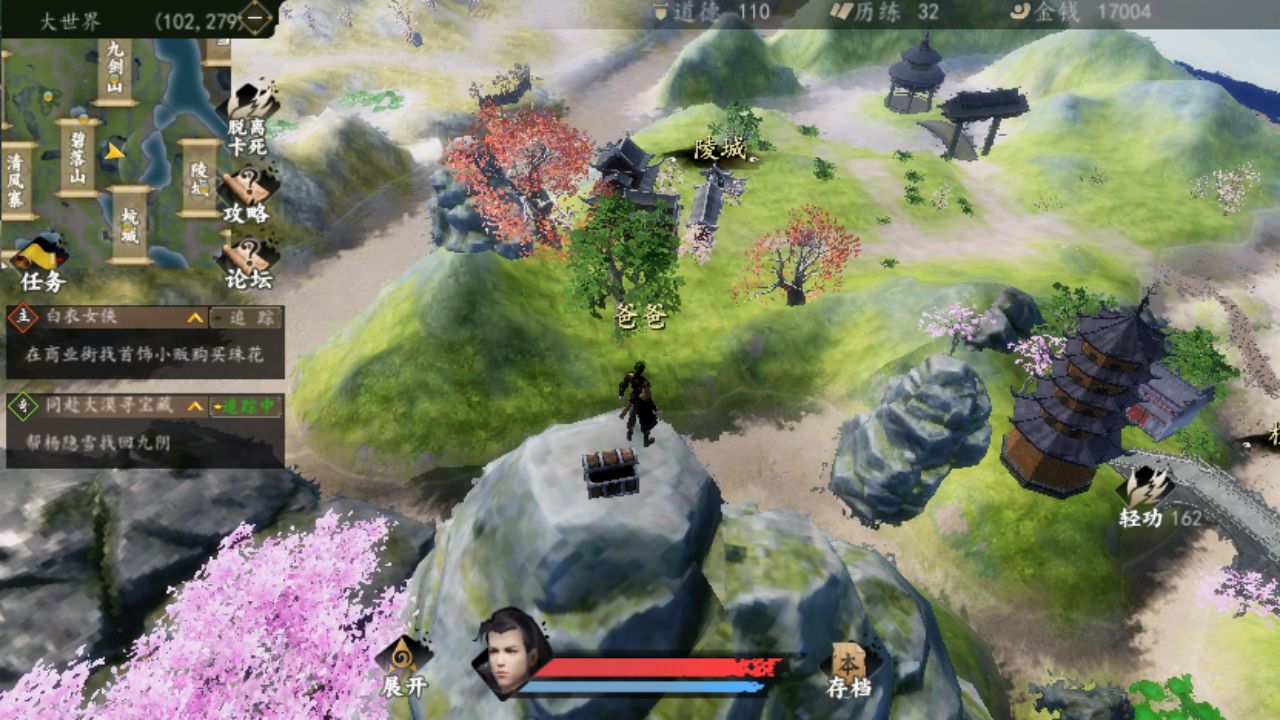 站在山顶,可以看到韩桃好几次。你可以在罗比山等着拿宝箱。