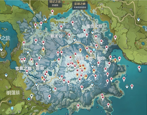 2、然后黄色的标记就是山谷洞里的赤红玉髓。