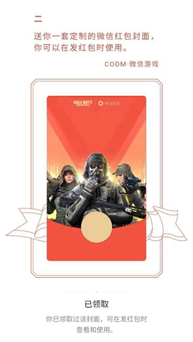 3.进入活动页面,免费领取《使命召唤》封面红包。