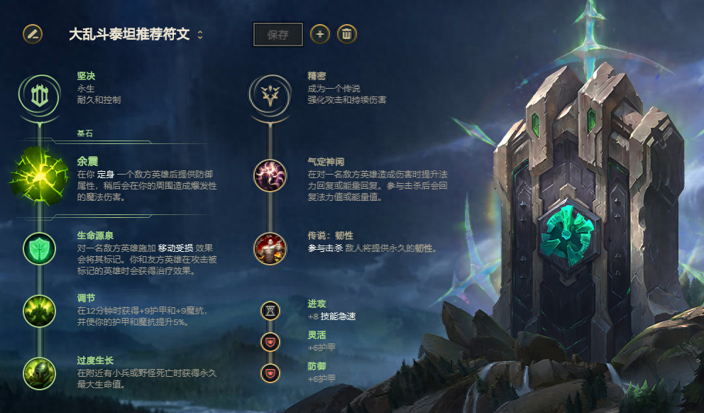 符文分析:泰坦很容易引发余震。有了余震,泰坦组队时的双倍抗性会更高,防止被第一波伤害。