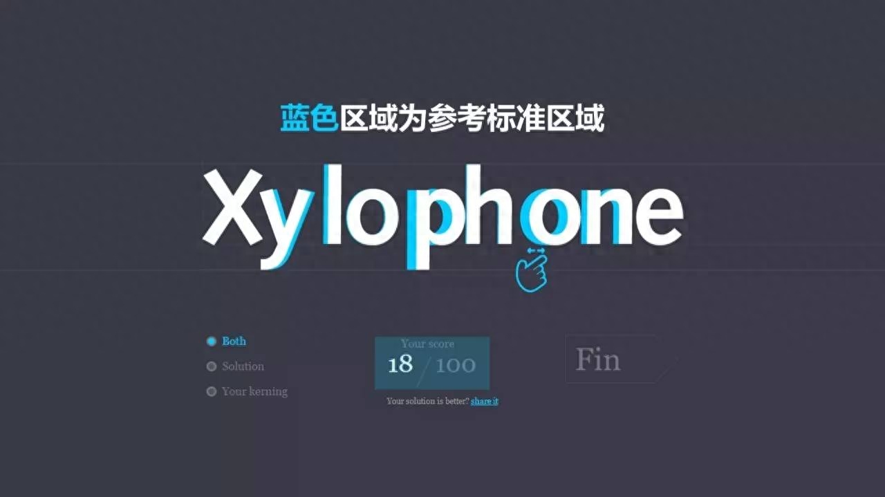 调整确认后,会出现蓝色文字(排版人员的设计方案)。你的文字和印刷者的设计之间的重叠度越高,得分就越高。