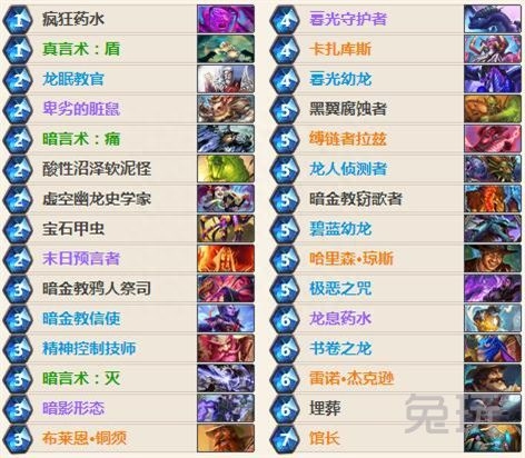 末日是非常特别的。在与一张牌相对的关键回合中,扔出一个空区域以抽出完整的第一手牌。 3费玩龙祭司很轻松,基本上赢了一半以上。