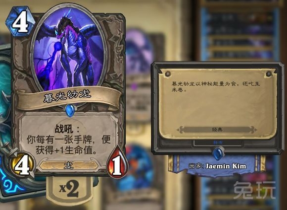 说一下这张卡的龙型,暮光守护龙,暮光蚊子,小青龙,特工举报,卷轴龙,加个战吼打3。说白了,这些卡是用来举报间谍的,而且还弥补宇宙守护者查卡的能力。