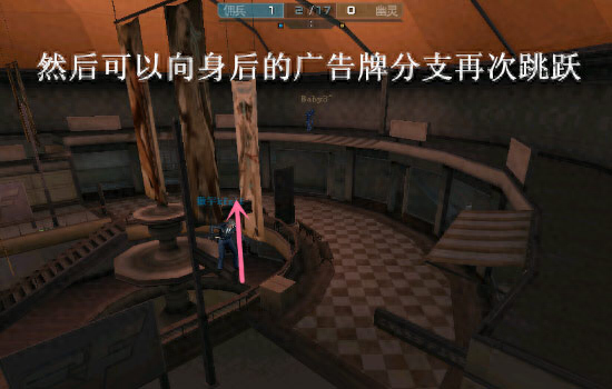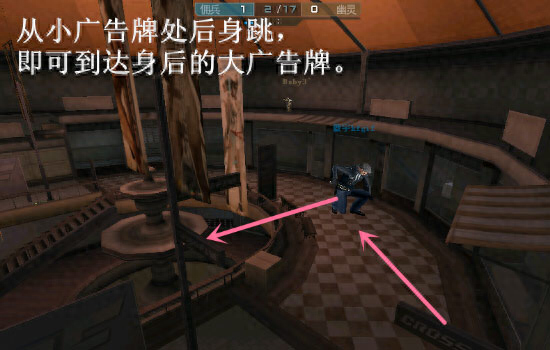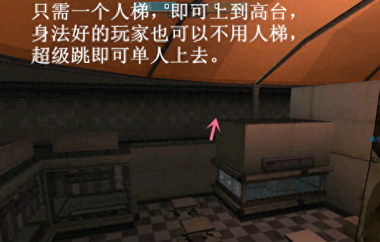 首先你要来到二楼的高地,面对红白条纹的天花板,瞄准最右边的角落。不要蹲下瞄准角落,否则你将没有空间向后跳。跳跃时瞄准正确的角度。跳到广告牌牌匾后,跳到后面的广告牌分支(如果不确定,不要跳,以免误跳)到达此点。当然,《疯狂宝贝》和《妖姬》不包括在内。
