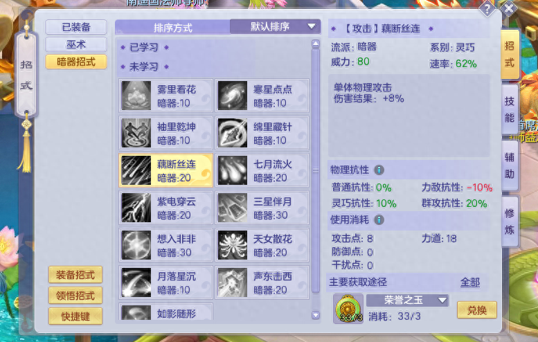 暗器派的招式前期都是搭配的,但在梦幻世界3紧张刺激的回合比赛中,我们实际选择的招式还是需要根据战局来判断。毕竟,动作是死的,但大脑是活的。没有无用的招式,只有意想不到的战术!