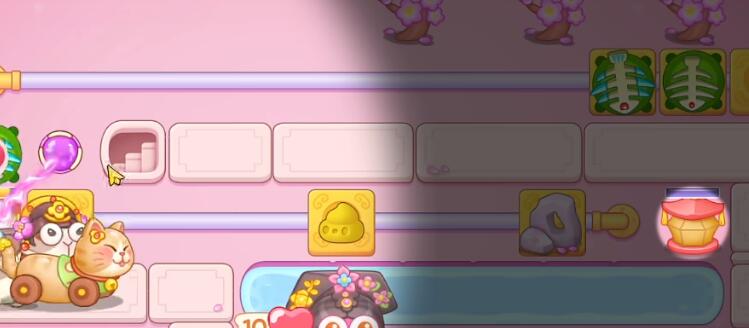 2.清理滑板上的道具后,将鱼刺放在上面,大便放在下面,然后将魔法球放在左上方。