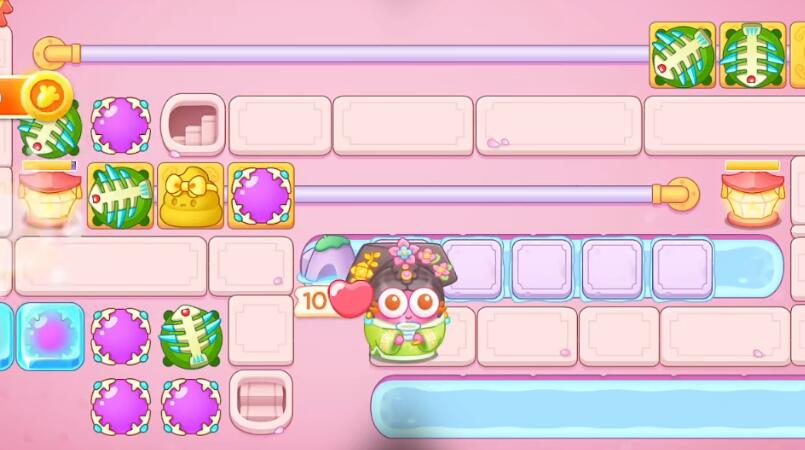 1.首先将鱼骨头放在左上方位置和上滑板上,打开地图并清除怪物。