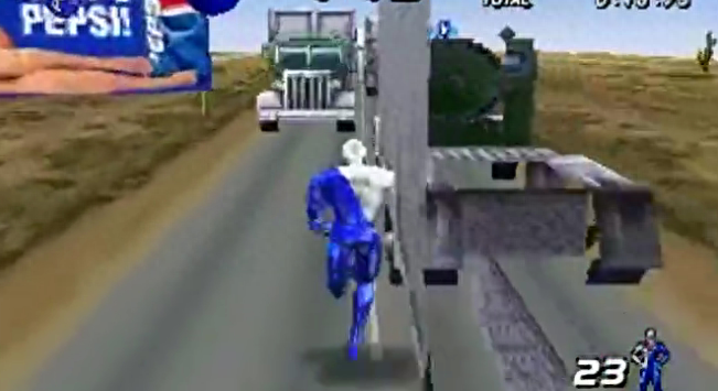 开发并于1993年在Playstation平台上发布。其玩法类似于前几年在智能手机上流行的Temple Run和Subway Surfers。玩家控制的穿着百事衫的超人会继续自行向前奔跑,玩家需要控制超人左右躲避障碍物。