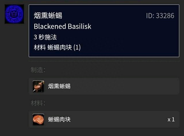 熏蜥蜴是法制中的常备必需品,估计以后平民也会吃。购买如下。