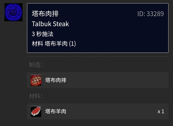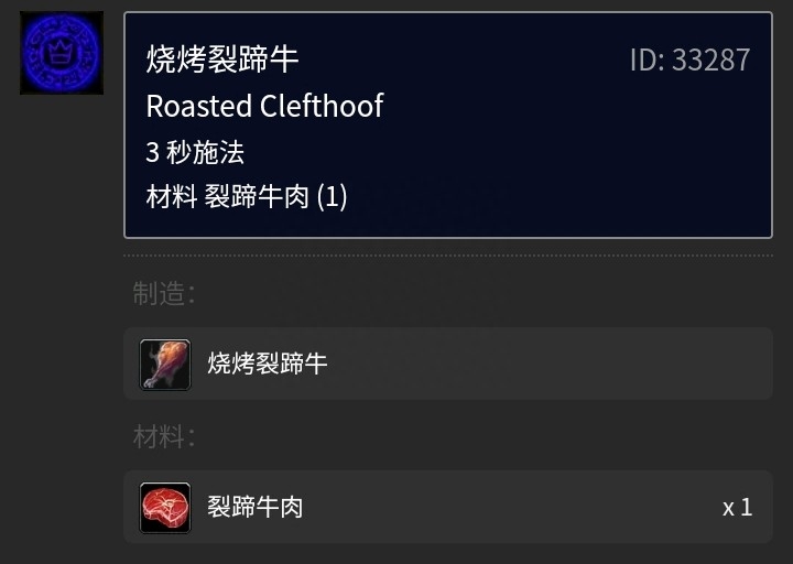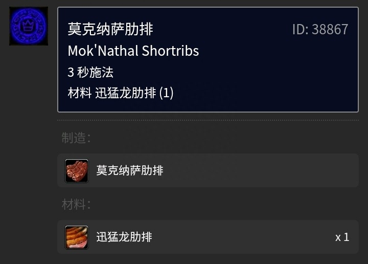 莫克纳萨排骨,普通Buff烹饪的低端版本,很多烹饪都有这个效果,完成任务时也可以获得。冯道山可以买到。