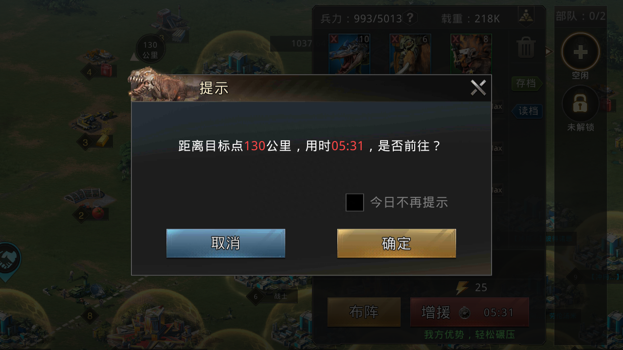 设定行进目标后,消耗钻石可以提高行进速度,但实际耗时的过程还是需要进行到底。战斗结束后返回基地也需要时间,且包含一趟时间;招募士兵的时间长短也取决于军衔。随着改善而增加。从初步调查信息来看,目前招募最长持续三个小时,日常任务还包括战斗环节。如果我们没有足够的军队,我们就无法完成这个任务。从这个角度来说,其实需要更长的时间:
