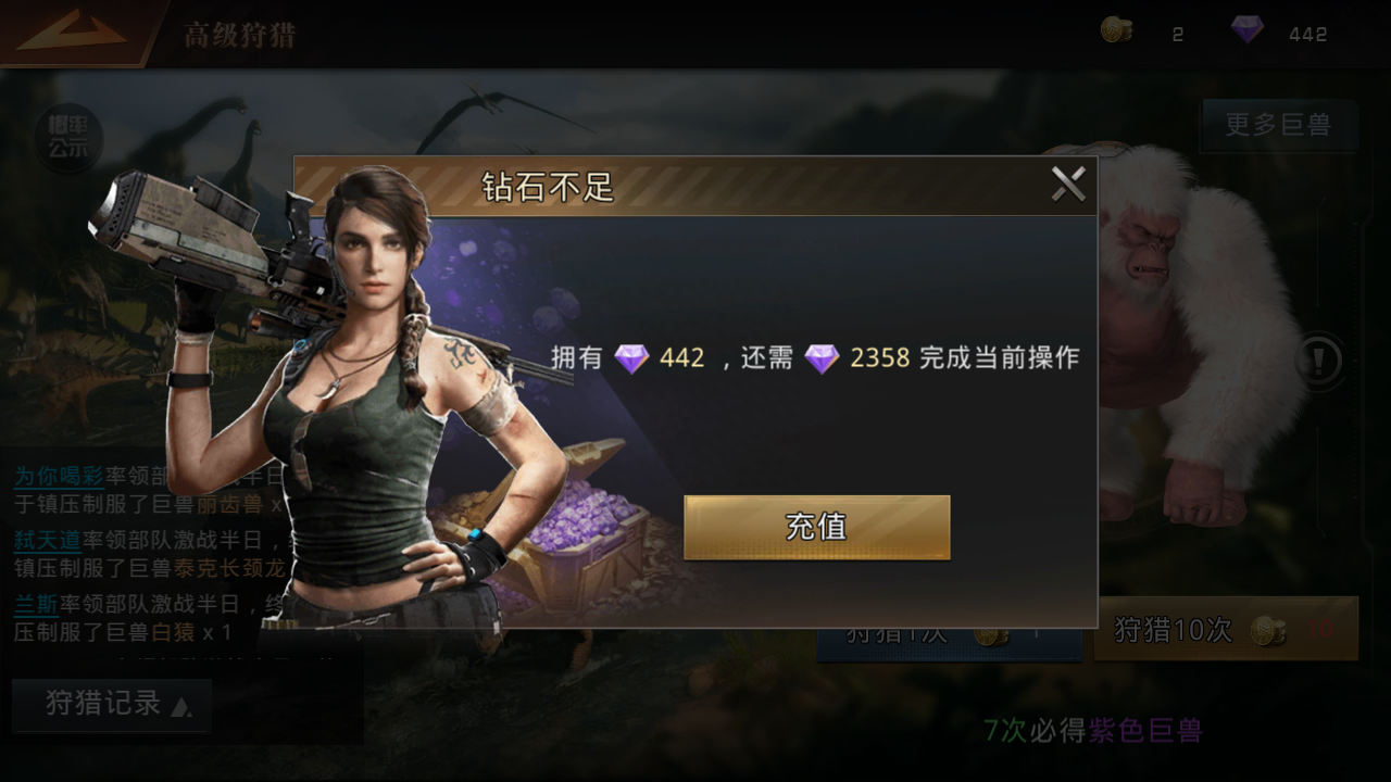 经过粗略换算对比,与市面上同类型游戏相差无几,偏差在10%左右。钻石的主要作用是提取优质巨兽,立即完成两个项目,其他用途很少: