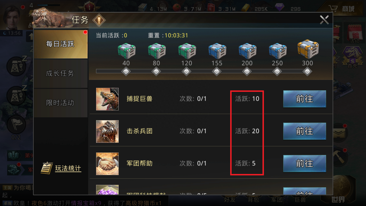 取消日常玩法,增加场景探索、事件搜索、捕捉巨兽等环节。考虑到传送阵、捕捉失败等因素,实际花费的时间更长;