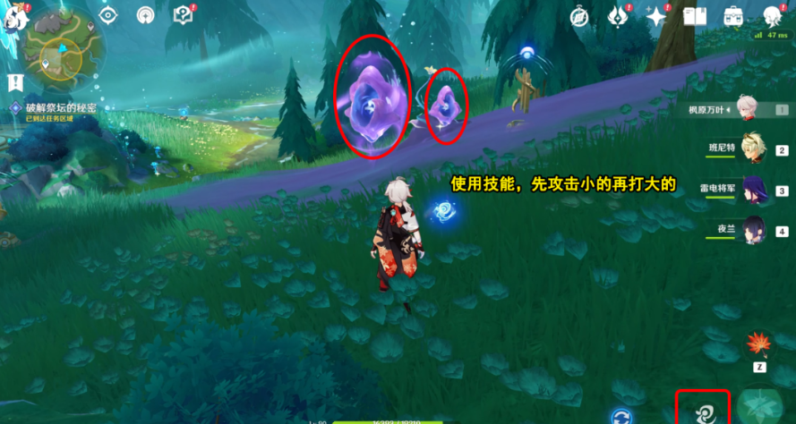 前往如下图位置,使用章鱼技能攻击污染凝块;