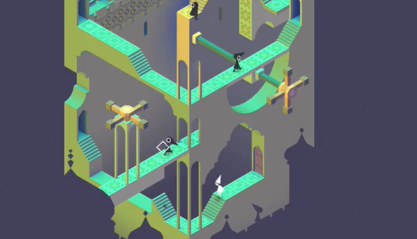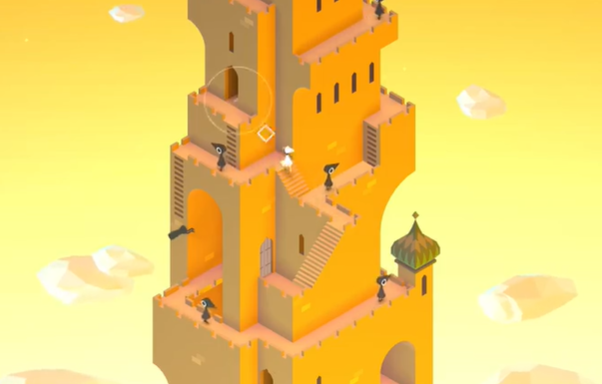 纪念碑谷1第五章攻略1。避开NPC,前往沿路左侧的机关。