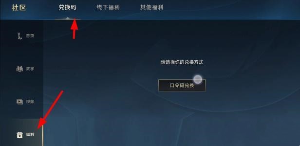 2.进入后,点击顶部的兑换码,在左下角找到福利选择密码兑换;